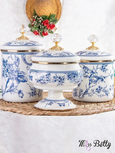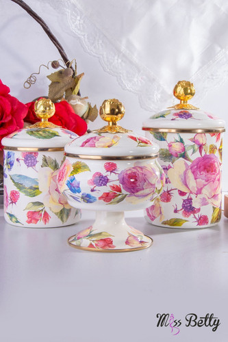 ست بانکه و قندان لعابی سه تایی میس بتی طرح گل رز ترکیه missbetty kavanozناموجود