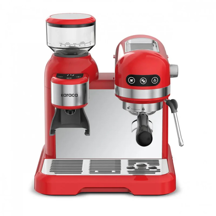 اسپرسو ساز همراه با فوم ساز شیر و آسیاب 19 بار کاراجا Coffeemaid قرمز karaca