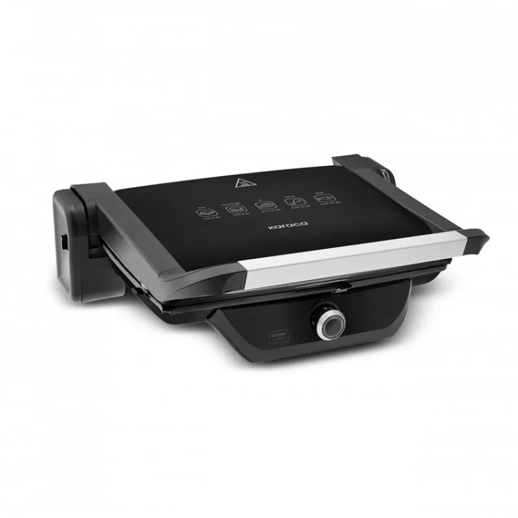 ساندویچ ساز و گریل کلاسیک Karaca Gastro با توان 2000 وات و تنظیم دمای 4 مرحله ای، گریل ها و برشته های شما را دقیقاً همانطور که می خواهید آماده می کند. صفحات ریخته گری غیر قابل احتراق و مقاوم در برابر خراش هستند. به لطف بدنه بازشو 180 درجه دستگاه خود می توانید گریل های خوشمزه را در حالت باربیکیو تهیه کنید که می توانید همزمان 6 برش نان تست را تهیه کنید. علاوه بر این با بدنه قابل تنظیم خود می توانید با ایجاد افکت فر به راحتی غذاهایی با ضخامت های مختلف بپزید. حفاظت از اتصال کوتاه استفاده ایمن بیشتری را فراهم می کند. با ویژگی حالت ایستاده و حالت قفل آن می توانید به راحتی آن را حمل و ذخیره کنید. علاوه بر این، می توانید با 4 رنگ مختلف فضایی شیک به آشپزخانه خود اضافه کنید
