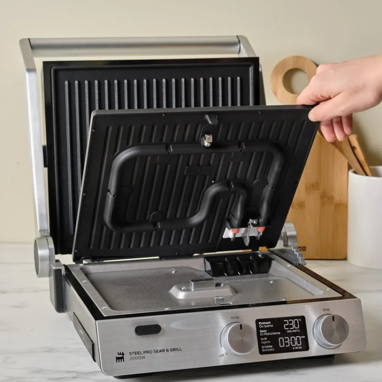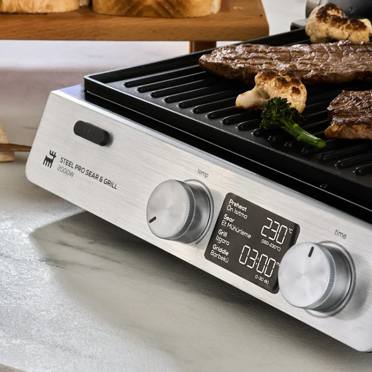 قدرت موتور 2000 وات به شما این امکان را می دهد که به لطف صفحات نسوز و نچسب آن به سرعت و در دمای ایده آل بپزید.