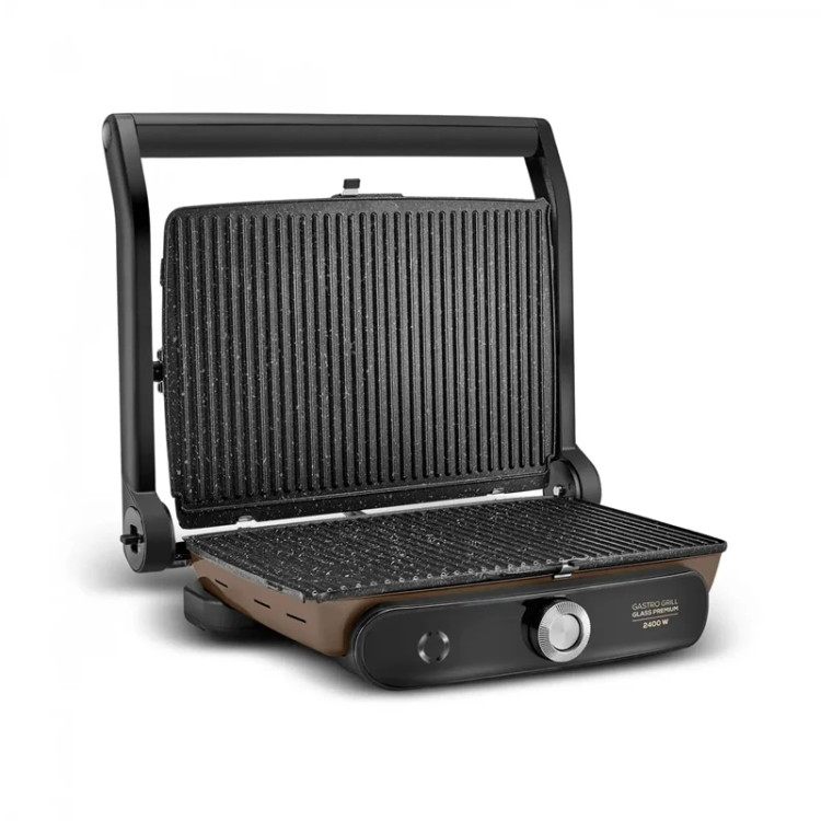 Karaca Gastro Grill Glass Premium 2400W با طراحی بدنه شیشه ای خود به آشپزخانه های شما ظرافت می بخشد. به لطف پوشش گرانیت خود، عملکرد نچسب غیر قابل احتراق خود را برای مدت طولانی حفظ می کند.در برابر خط و خش بسیار مقاوم و فوق العاده قدرتمند با توان ۲۴۰۰ وات است.با گنجایش ۶ نان تست می توانید یکباره منوهای خانوادگی تهیه کنید.علاوه بر این به لطف بدنه ۱۸۰ درجه بازشو می توانید با یک حرکت آن را به منقل تبدیل کنید و از کباب پز لذت ببرید.دستگاه شما دارای یک تنظیم دما است که می توانید آن را با توجه به غذایی که می خواهید بپزید تنظیم کنید، به لطف پلاستیک های مقاوم در برابر حرارت و حفاظت مدار حرارتی، امنیت بالایی را ارائه می دهد.علاوه بر این، دمای آن را می توان به راحتی با سنسورهای نور آن که نشان می دهد به دمای مطلوب رسیده است، کنترل کرد. به لطف صفحات قابل شستشو در ماشین ظرفشویی به راحتی تمیز می شود.