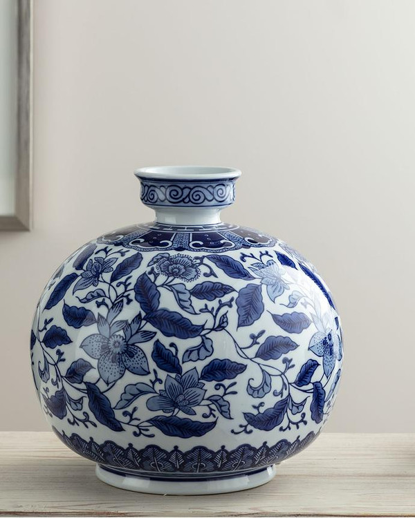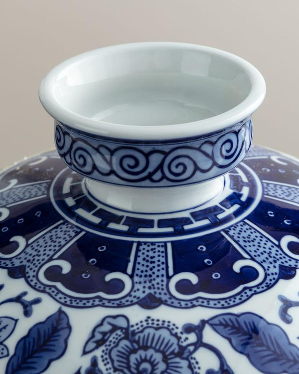 گلدان آبی روشن اولنی سو بوا با طرحهای آبی و سفید طراحی شده و با زیباییشناسی قوی خود،
