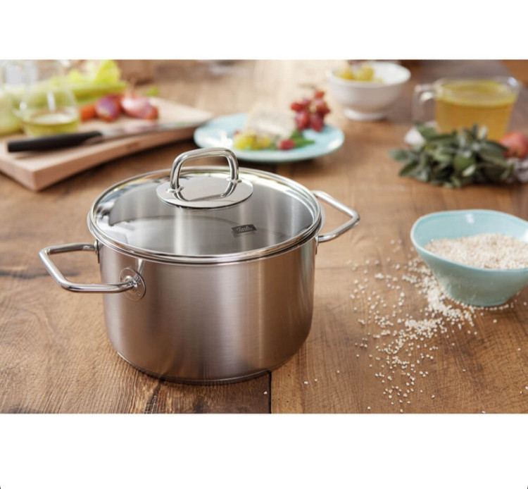 سرویس قابلمه 9 پارچه فیسلر مدل FISSLER Viseo از 9 قطعه ساخته شده از استیل 18/10 و درب آن از شیشه و استیل است همچنین دسته های قابلمه در طول پخت و پز داغ نمی شوند ، غذای خود را هنگام پخت به دلیل درب شیشه ای به راحتی کنترل کنید . کف سه لایه جهانی ثبت شده TransTherm به لطف توزیع و حفظ بهینه گرما ، هنگام پخت و پز در مصرف انرژی صرفه جویی می کند . سطح فوق العاده صاف و فوق العاده سخت در برابر خراش و خط ، بنابراین به راحتی تمیز می شود و همیشه ظاهر آن جدید است . این سرویس دارای شیر جوش با حجم 1.4 لیتر است