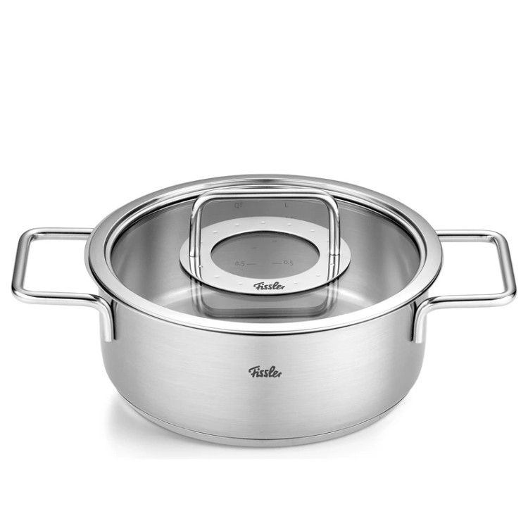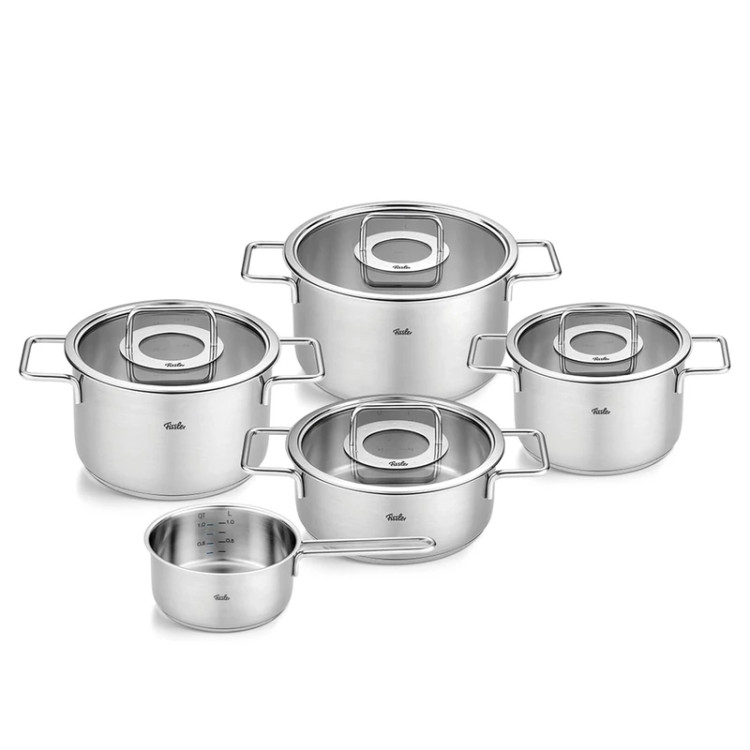 سرویس قابلمه استیل ۹ پارچه فیسلر پیور کالکشن درب پیرکس آلمان Fissler pure collection