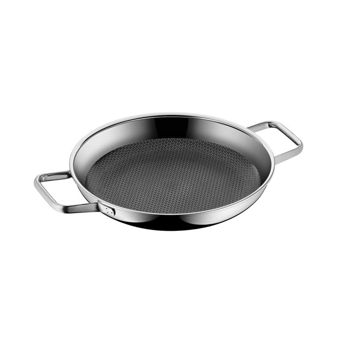 تابه های زنبوری دبیلیو ام اف که متریال آن سه لایه و متشکل از فولاد کرومارگان ، آلمینیوم و فولاد کروم و روکش نچسب ساخته شده انده که جلوه بسیار زیبایی به آشپزخانه شما می دهد. به دلیل ساختار زنبوری شکل آن که شبکه های آن برجسته است و مانع لمس قاشق با کف نچسب تابه می شود و مقاوم در برابر گرما و ضد خط و خش است . دیگر مزیت آن توزیع گرما در سراسر تابه به دلیل کف سه لایه که باعث می شود طبخ غذا بهتر و با کیفیت تر شود و همچنین دسته ها این مدل تابه WMF Profi Resist در برابر گرما مقاوم است و داغ نمی شود
