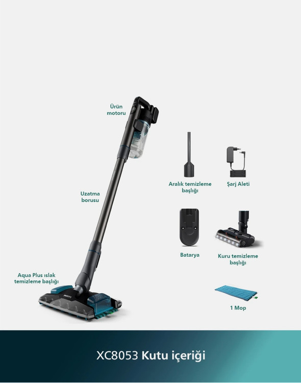 سَری Aqua Plusبهطور اختصاصی طراحی شده تا همزمان جارو کرده و تی بکشد. این سری، تا 99٪ گرد و غبار، آلودگی و لکههای سخت را از سطوح سخت خانه پاک میکند(4). همچنین میتوان از مواد شوینده یا پاککننده مخصوص زمین فیلیپس (XV1792)استفاده کرد
