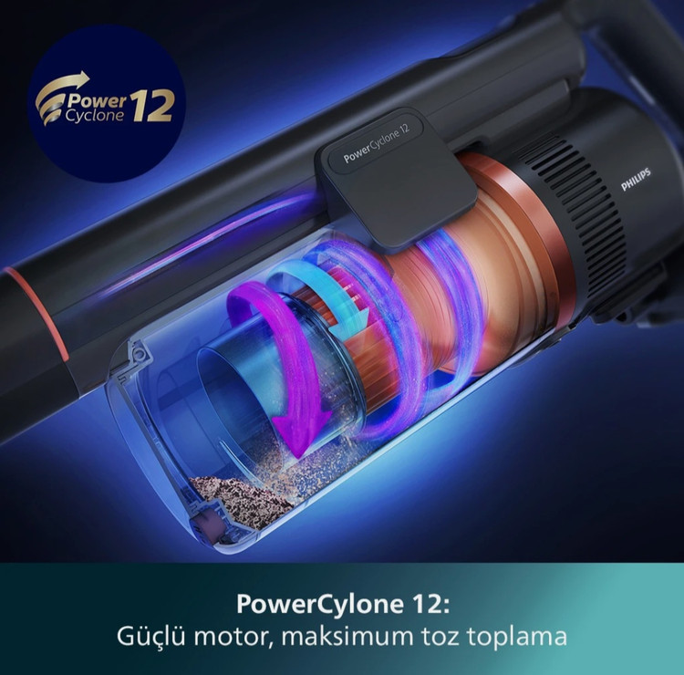 جاروبرقی بیسیم فیلیپس سری 8000. با سری جارو و تی، لکهها را پاک کنید و تا 99٪ از باکتریها را از بین ببرید (4). با فناوری PowerCyclone 12,حداکثر جذب گرد و غبار را با حداقل مصرف باتری تجربه کنید (9). با یک بار شارژ، کل خانه خود را تمیز کنید (5).