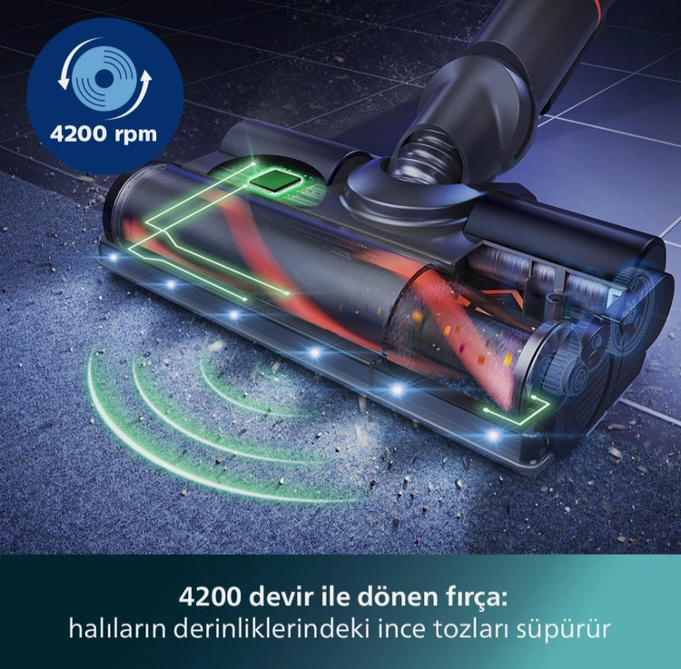 سَری هوشمند PrecisionPower در یک حرکت، گرد و غبار و آلودگی را تا 99.9٪ از بین میبرد (8). همچنین با تشخیص هوشمند نوع سطح ،سرعت چرخش برس و جریان هوا را برای سطوح سخت و نرم بهصورت خودکار تنظیم میکند.