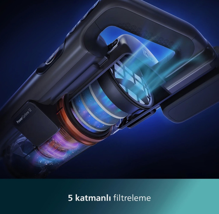 سیستم فیلتراسیون 5 مرحلهای، گرد و غبار ریز و آلرژنها را تا 99٪ فیلتر میکند. این سیستم شامل فناوری PowerCyclone 12 با تکنولوژی گردباد آیرودینامیکی , فیلتر 3 مرحلهای فومیو فیلتر الکتروستاتیکاست.