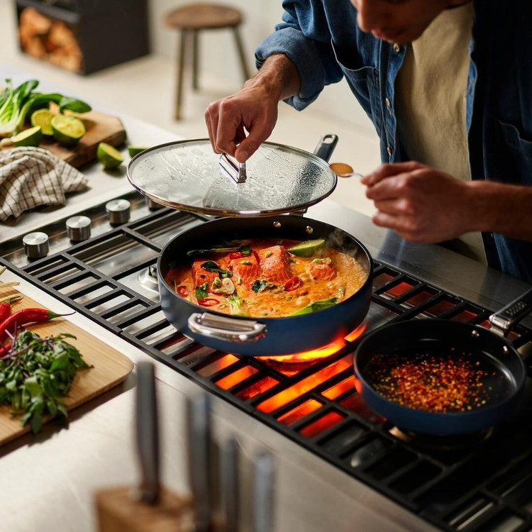 سری Space از مواد باکیفیت مورد استفاده در آشپزخانههای حرفهای ساخته شده است. بدنه آلومینیومی ضخیم آن باعث توزیع یکنواخت حرارت شده و دوام قابلمهها و تابهها را افزایش میدهد. همچنین، محصولات این سری تا دمای 232 درجه سانتیگراد برای استفاده در فر ایمن هستند و میتوانید غذاهای خود را مستقیماً در فر بپزید.