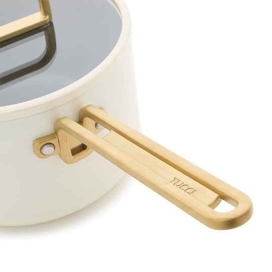 دستههای استیل طلایی طراحی شدهاند تا علاوه بر زیبایی، در برابر حرارت مقاوم باشند.