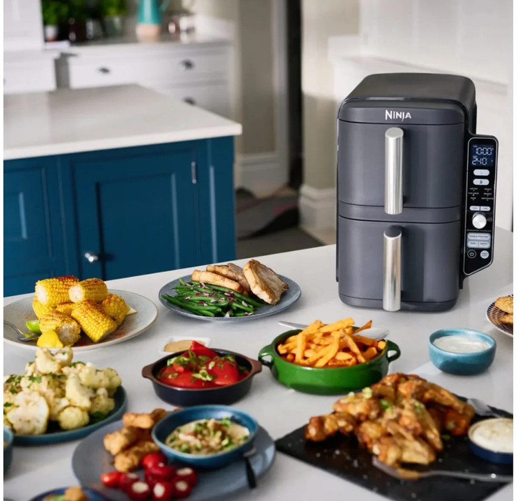 سرخکن بدون روغن Ninja SL400 DoubleStack XL نسل جدیدی از ایر فرایرهای نینجاست که با طراحی دو طبقهی عمودی، فضای کمتری از آشپزخانه میگیرد و در عین حال ظرفیت بالایی ارائه میدهد.