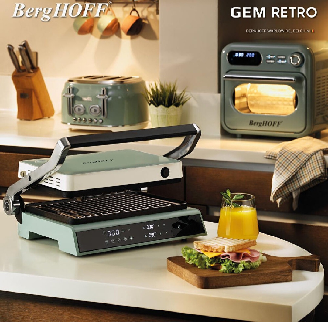 گریل و توستر دیجیتال Berghoff Gem Retro 2000W با طراحی کلاسیک و کنترل لمسی LCD،