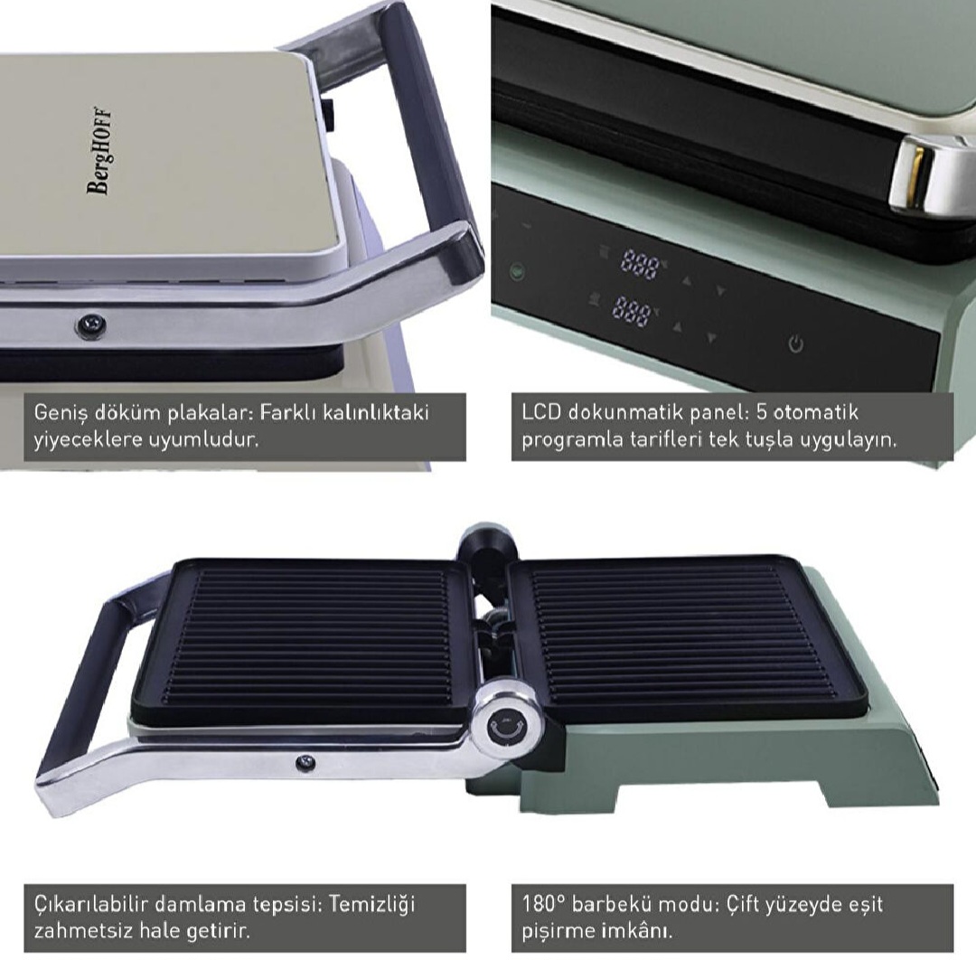 طراحی بدنهی سبز نعنایی با جزئیات استیل براق، آن را به یکی از زیباترین مدلهای گریل خانگی در بازار ترکیه تبدیل کرده است.
