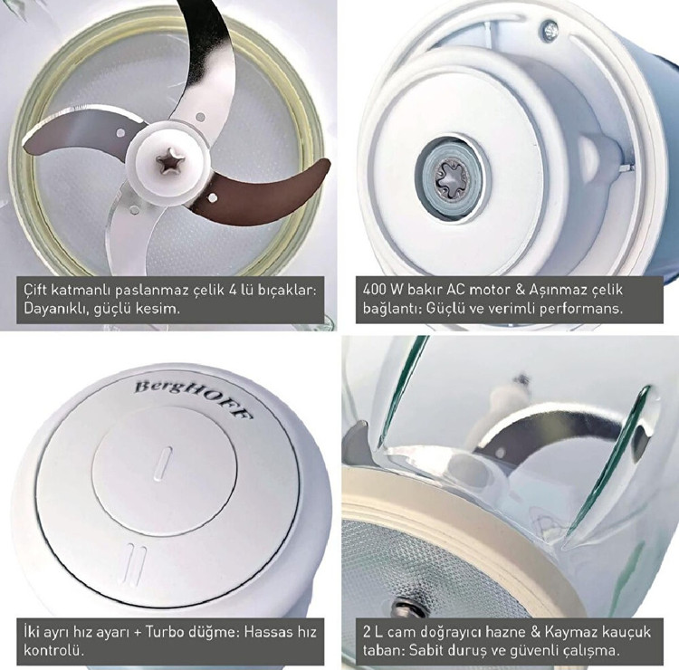 Berghoff Gem Retro Doğrayıcı با طراحی کلاسیک و قدرت 400 وات، مناسب برای خرد کردن انواع سبزیجات، پیاز، گوشت و مغزهاست.