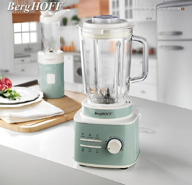 Berghoff Gem Retro 1500W Masaüstü Blender – 1.5L Cam Hazneli, Titanyum Bıçak, Bakır AC Motor, Mint Yeşil