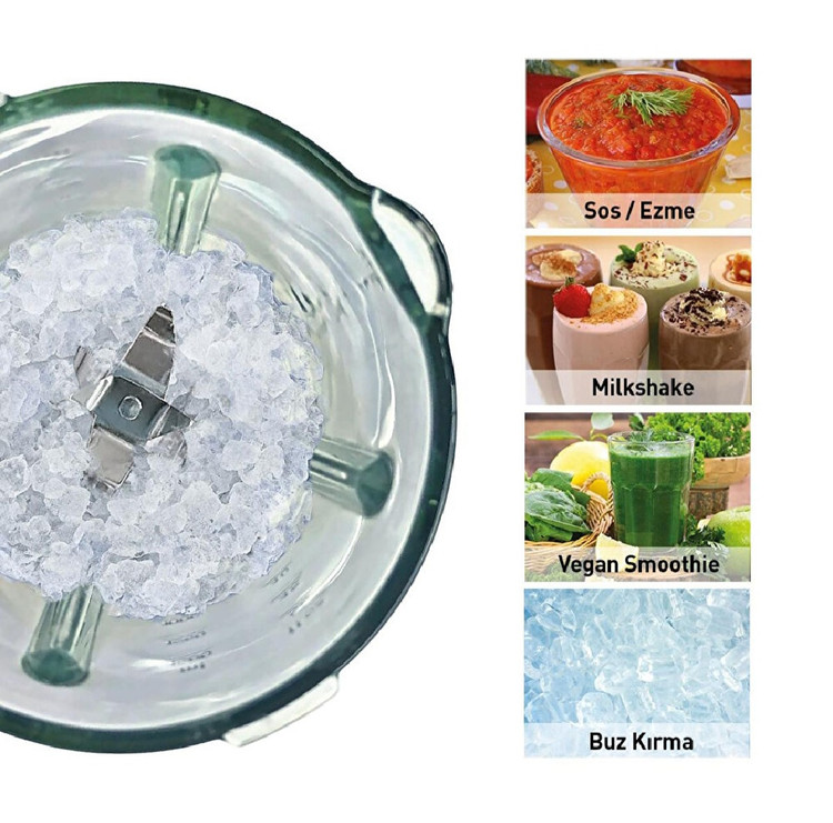 مجهز به موتور قدرتمند 1500 وات با تیغههای تیتانیومی ضد زنگ است که قابلیت خرد و مخلوط کردن انواع مواد سخت مانند یخ، میوههای منجمد و مغزها را دارد.