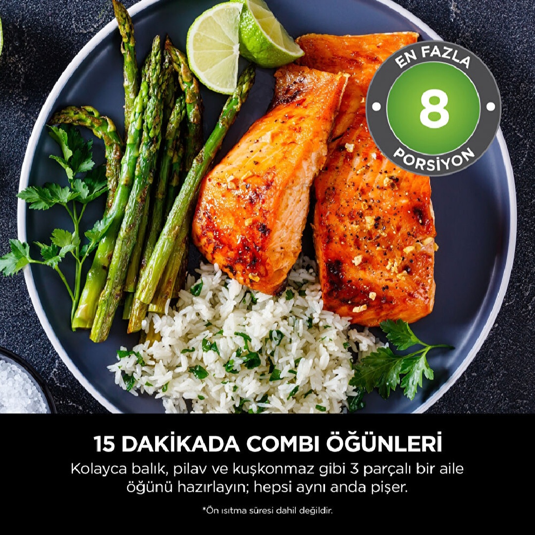 قابلیت Combi Cook باعث میشود بتوانید همزمان چند روش پخت را ترکیب کنید (مثل بخار و گریل یا سرخ و پخت همزمان)، که نتیجهای ترد و آبدار بهدست میدهد.