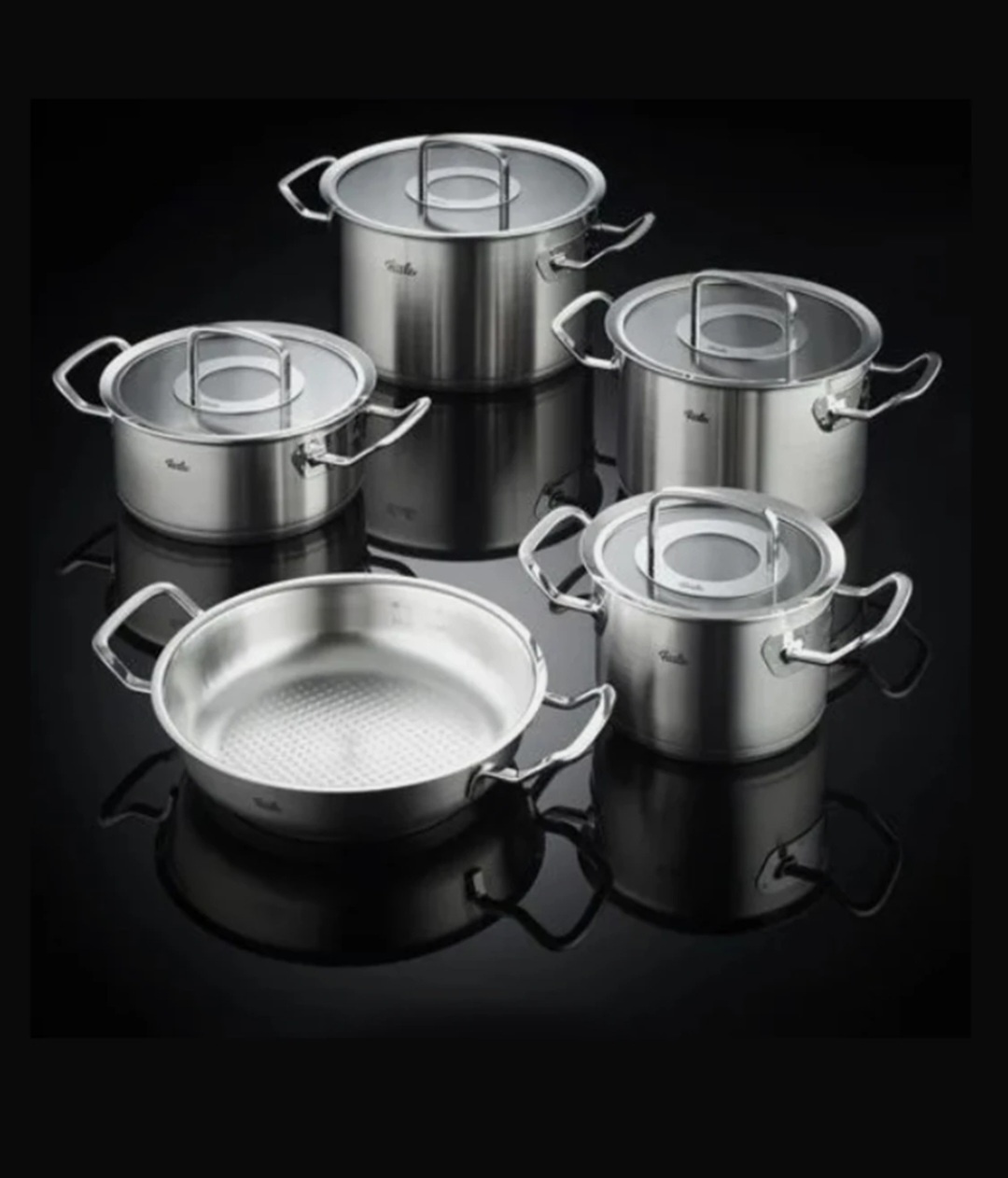 سرویس قابلمه ۹ پارچه استیل درب پیرکس فیسلر آلمان پروفی Fissler original profi