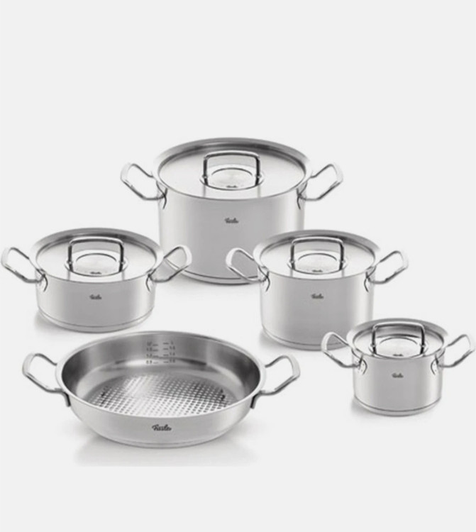 ست ۹ پارچهی Fissler Original Profi Collection یکی از حرفهایترین مجموعههای پختوپز در جهان است. طراحی آن توسط سرآشپزان آلمانی انجام شده و برای استفاده روزمره یا حرفهای در آشپزخانهها ایدهآل است.