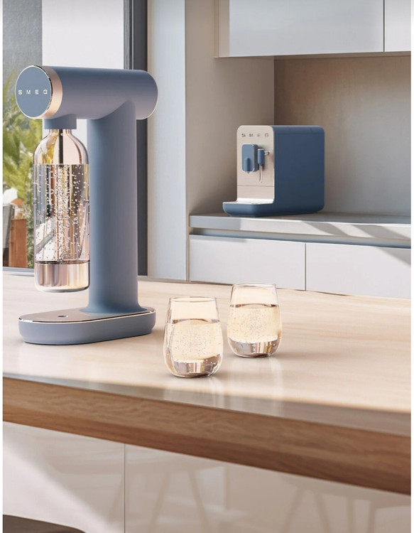 دستگاه Soda Maker مدل SKC01 از برند SMEG ترکیبی از طراحی زیبا و عملکرد پیشرفته است. بطری آن از جنس Tritan™ Renew ساخته شده که نیمی از آن بازیافتی است و فاقد BPA میباشد، لذا گزینهای پایدار و ایمن برای استفاده روزمره است. دستگاه برق نمیخواهد و با سیلندر CO₂ استاندارد کار میکند. پیچ کنترل جریان کاربناسیون به شما امکان میدهد سطح گازدار بودن آب را به میل خود تنظیم کنید؛ علاوه بر این، سینی چکهی مغناطیسی سطح زیر دستگاه را تمیز نگه میدارد. طراحی جمعوجور و مدرن آن باعث میشود دستگاه بهخوبی در آشپزخانه یا میز بار قرار گیرد. برند SMEG، که سابقهاش از ایتالیاست، این دستگاه را با کیفیت بالا در سری Collezione عرضه کرده است.