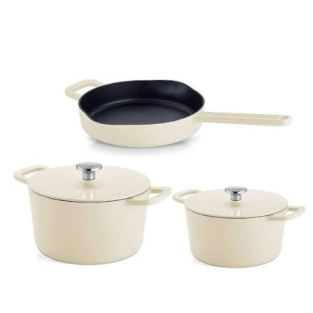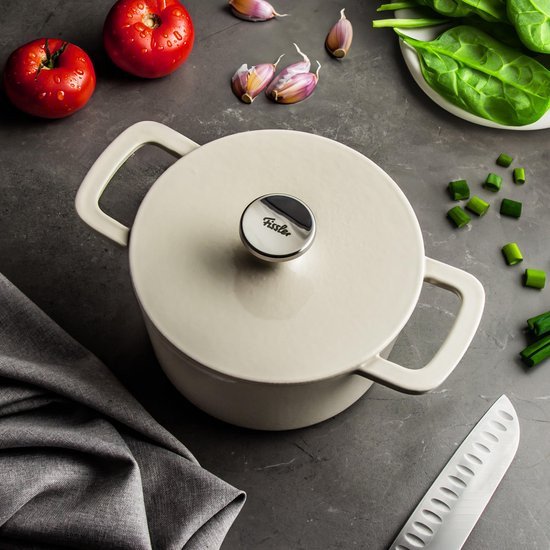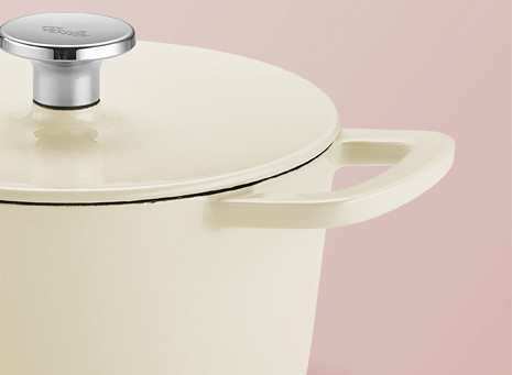 این قابلمه از سری ”Moments Collection“ برند Fissler است که ترکیبی از کیفیت چدن کلاسیک و لعاب مدرن برای آشپزی خوشطعمتر فراهم میآورد. با استفاده از چدن ریختهگری، این محصول حرارت را بهخوبی نگه میدارد و مناسب پختهای طولانی و آرام است. لعاب داخلی AromaStar باعث میشود غذا از جمله گوشت یا سبزیجات، بیروناً کمی گریل شود و داخلاً آبدار بماند. این محصول برای تمام نوع اجاقها (از جمله القایی) طراحی شده است، و استفادهاش در فر نیز امکانپذیر است. سری Moments با رنگبندی جذاب کرم و زرشکی عرضه شده تا ظاهر آشپزخانه را نیز زیباتر کند.