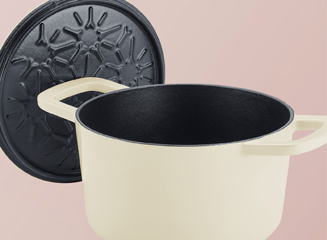 - نوع: قابلمه / چدن ریختهگری (cast iron) با لعاب داخلی (enamelled)