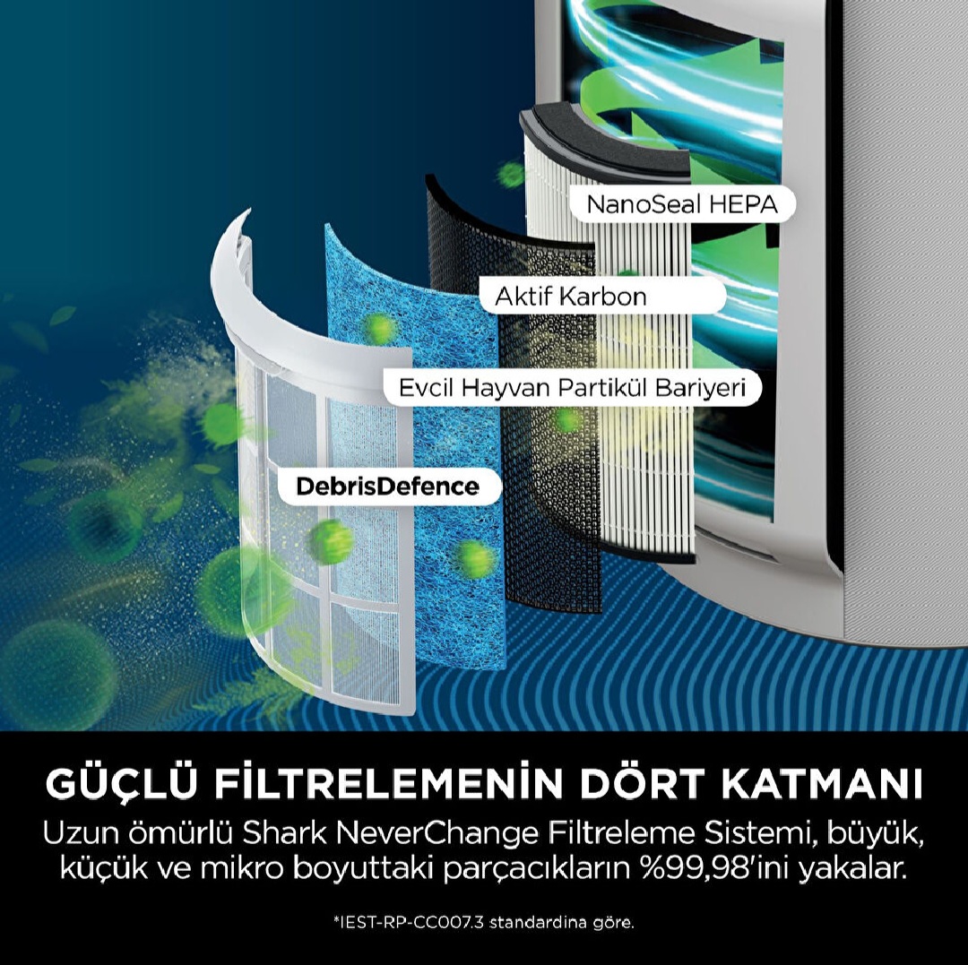 فیلتر بسیار باکیفیت NeverChange5 HEPA تا ۵ سال نیاز به تعویض ندارد و ۹۹٫۹۷٪ ذرات ریز شامل گردوغبار، دود، باکتری، آلودگی بیرون، پرز حیوانات و بوی نامطبوع را جذب میکند.