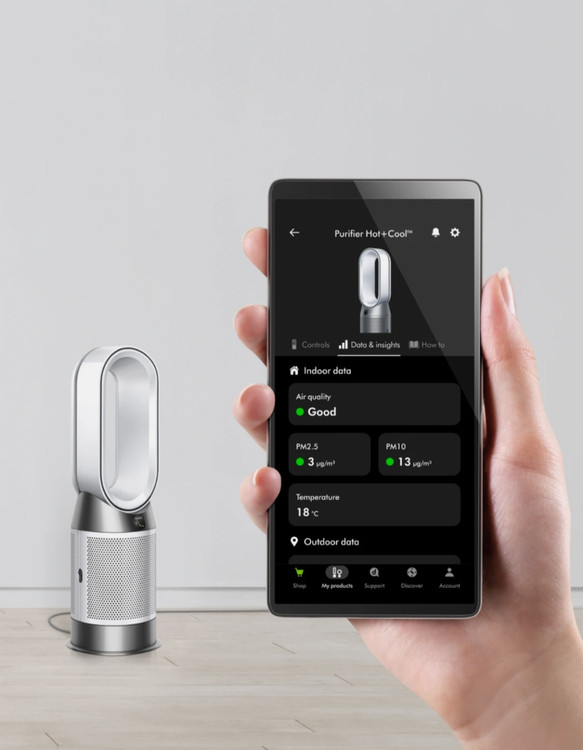 کنترل از راه دور یا از طریق اپلیکیشن رسمی Dyson (MyDyson) امکاناتی مثل تنظیم خودکار، زمانبندی، نظارت کیفیت هوا و کنترل از راه دور را فراهم میکنند.