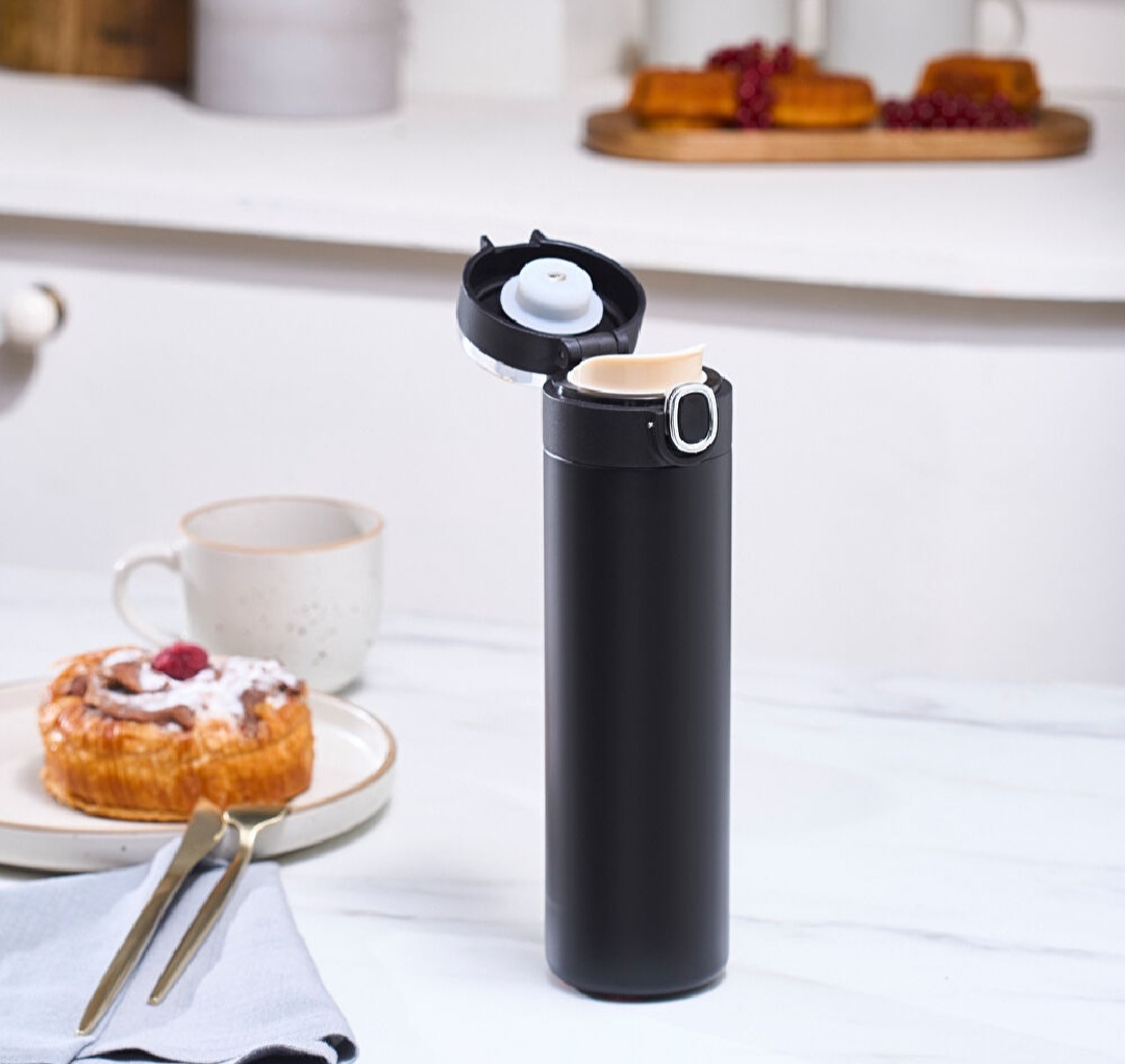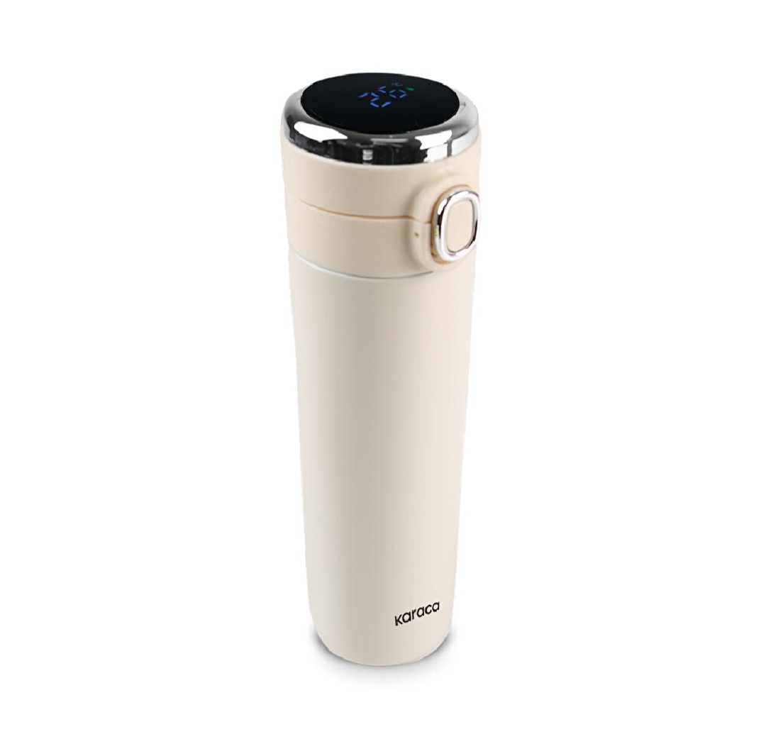 ترموس استیل Karaca Etro Digital 480ml با بهرهگیری از بدنه دوجداره با عایق خلأ، نوشیدنیهای گرم و سرد را برای مدت طولانی در دمای مطلوب نگه میدارد.