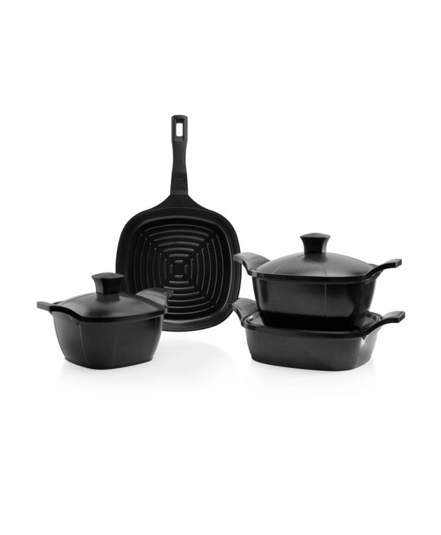 Schafer – Feslen Kare Seramik 7 Parça Tencere Seti (Siyah)