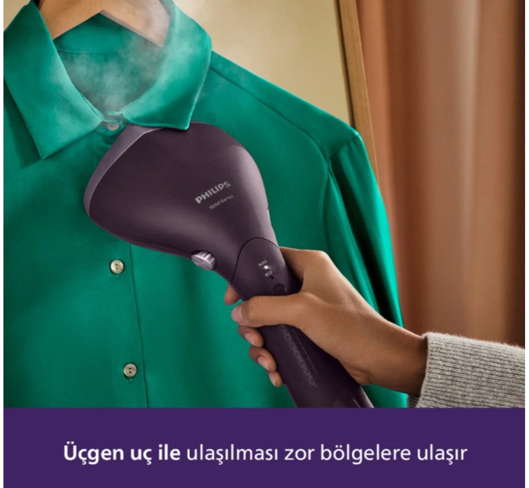 بخارگر دستی Philips مدل STH7050/30 دستگاهی سبک و قابل حمل است که برای صاف کردن سریع چروک لباسها بدون نیاز به میز اتو طراحی شده است.