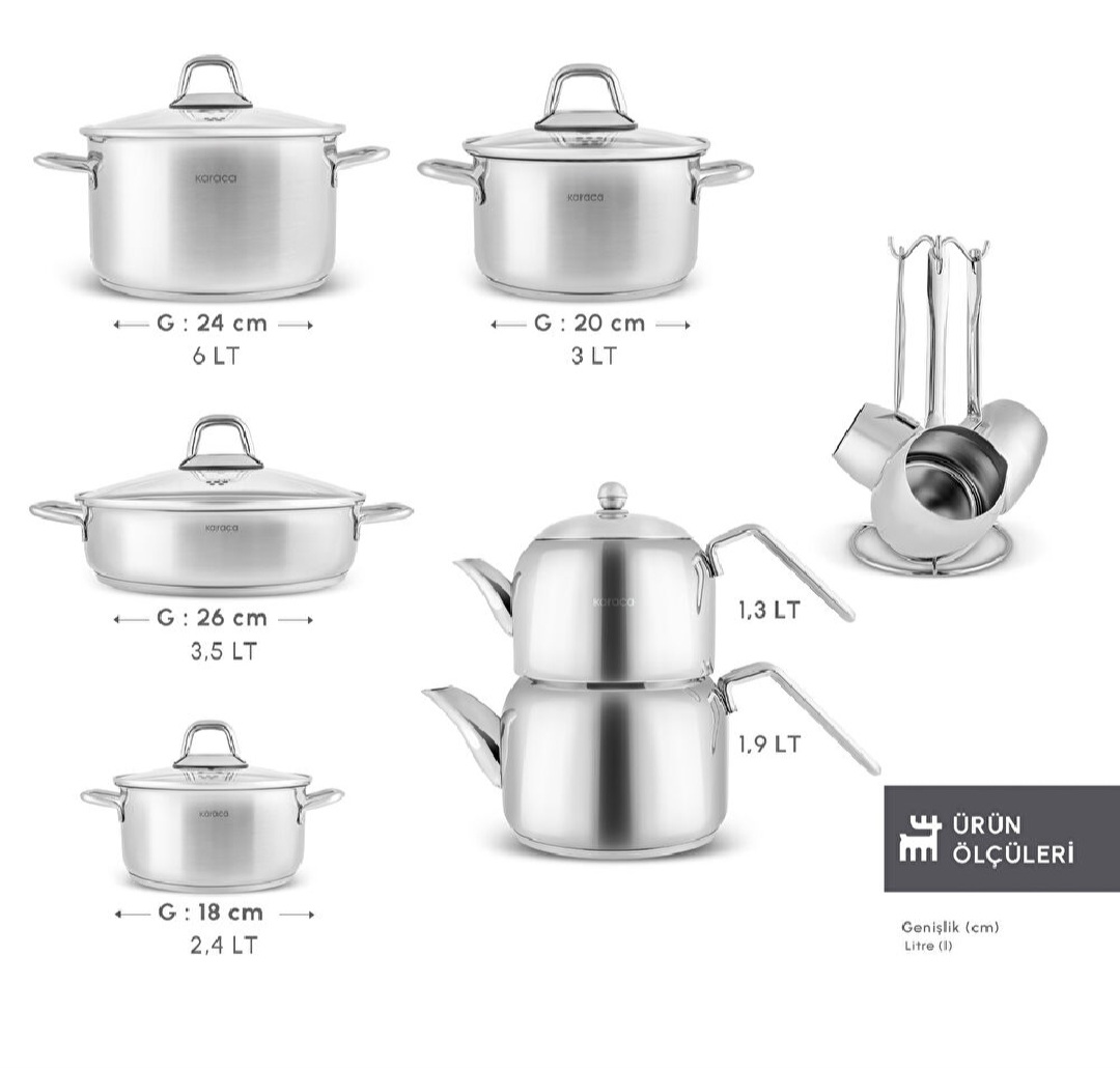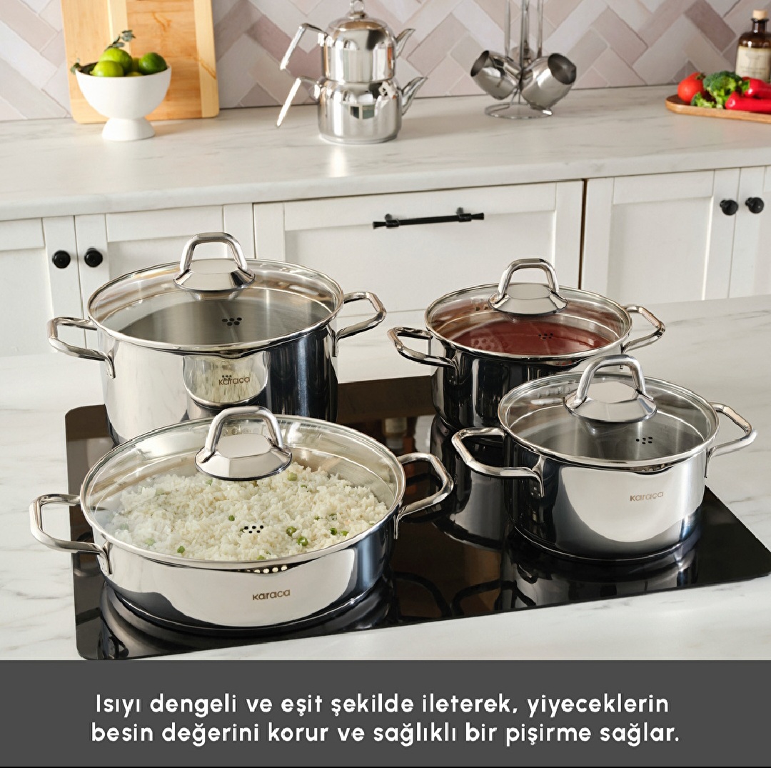 Karaca – Vapor İndüksiyon Tabanlı 15 Parça Çelik Tencere Çaydanlık ve Cezve Seti