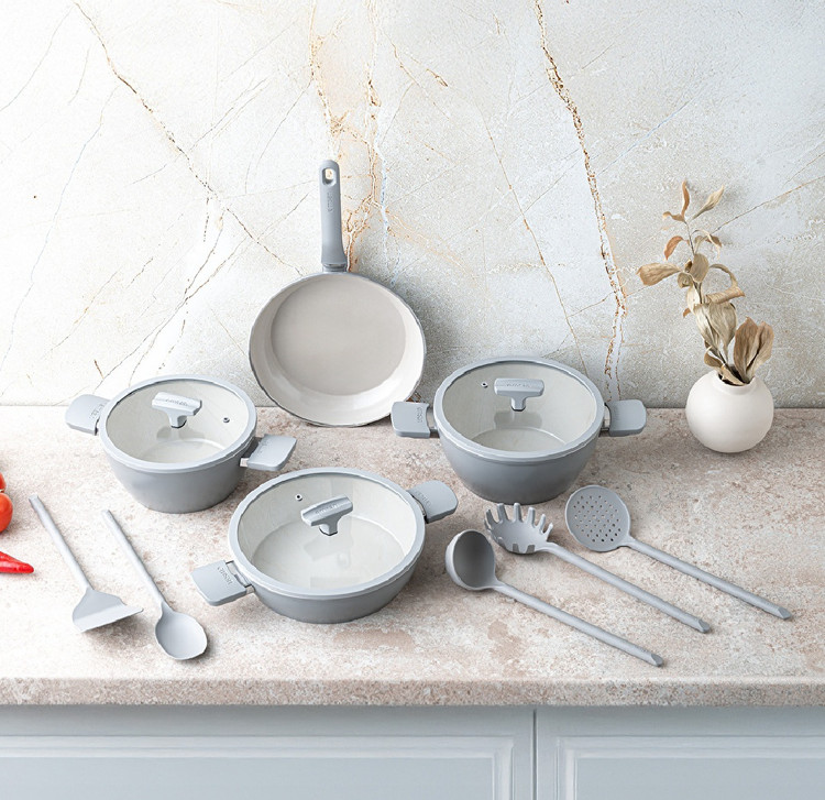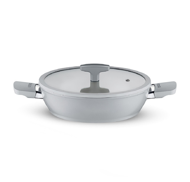بدنه آلومینیوم ضخیم حرارت را بهصورت یکنواخت پخش میکند و پوشش کریستالی نچسب آن باعث میشود غذا بدون چسبیدن و با حداقل روغن آماده شود.