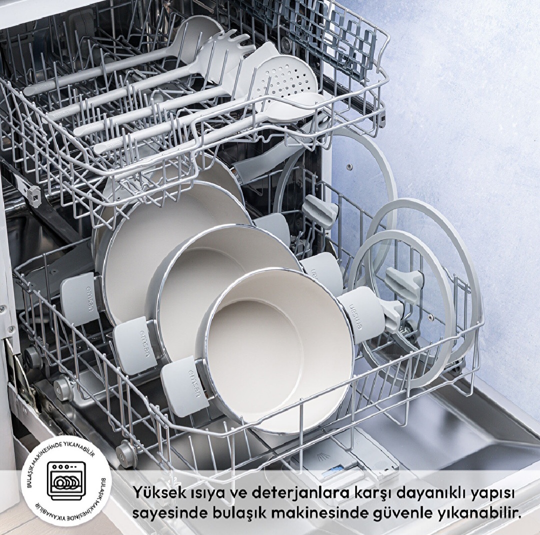 سرویس Emsan Swiss Crystal RS با طراحی مدرن و رنگ طوسی مینیمال، گزینهای مناسب برای آشپزخانههای امروزی است.