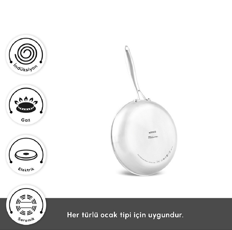 کف القایی آن امکان استفاده روی انواع اجاقها از جمله اجاقهای القایی را فراهم میکند. این مدل ظاهر کاملاً استیل و حرفهای دارد و مناسب آشپزخانههای مدرن و استفاده نیمهحرفهای است.