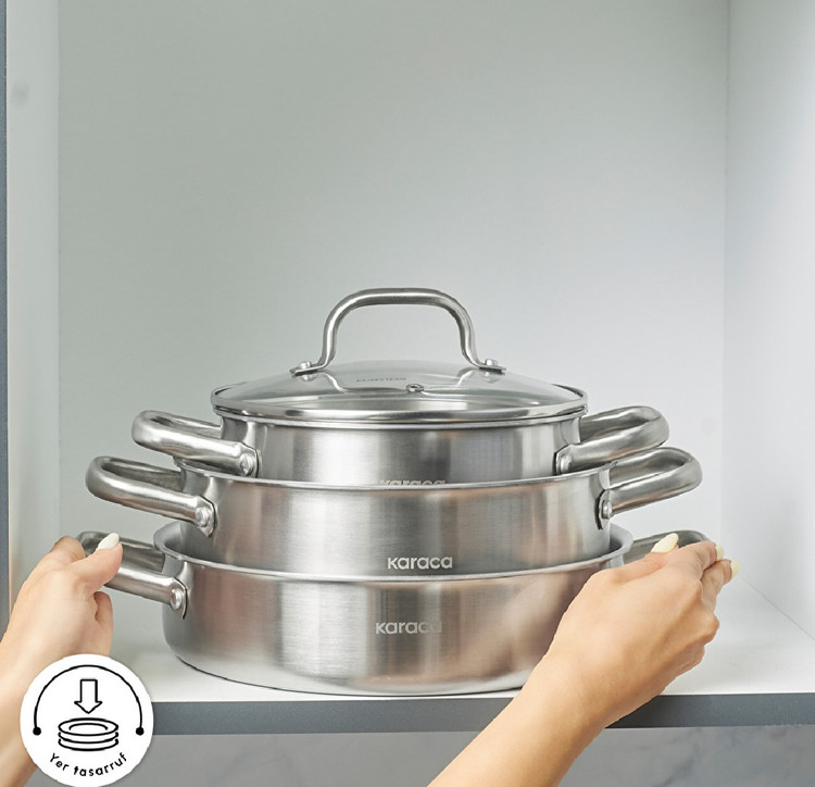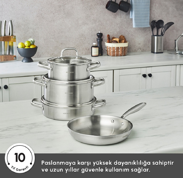 Karaca – PowerSteel 316+ 3Ply Akita İndüksiyon Tabanlı 7 Parça Tencere Seti