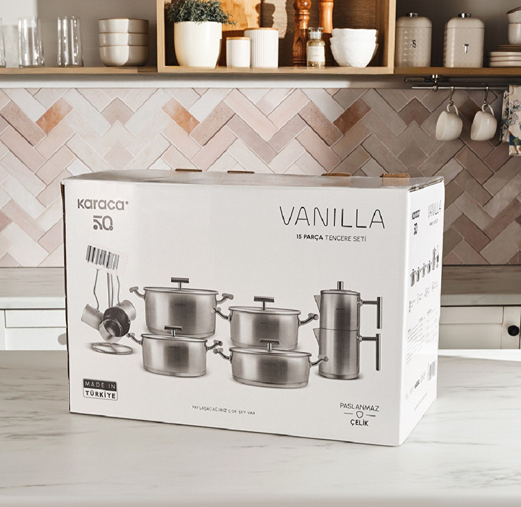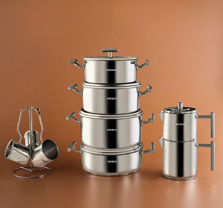 سرویس قابلمه ۱۵ پارچه پاوراستیل ۳۱۶ وانیلا کاراجا ترکیه Karaca powersteel 316+ vanilla