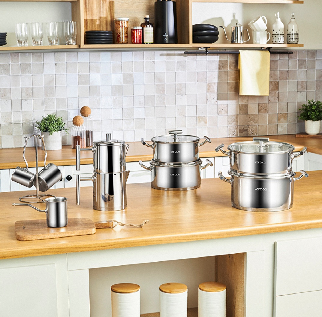Karaca – PowerSteel 316+ Vanilla 15 Parça Çelik Tencere Seti