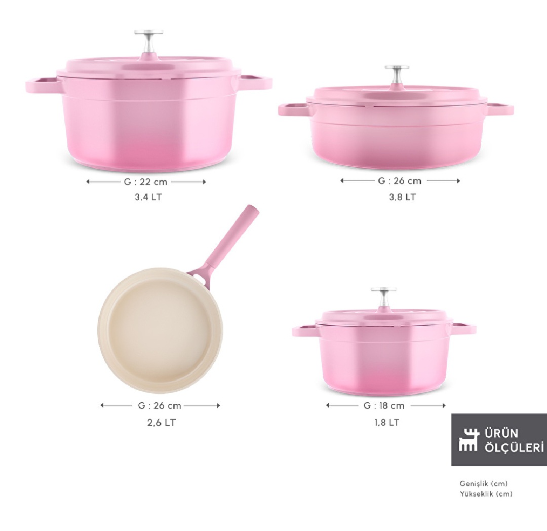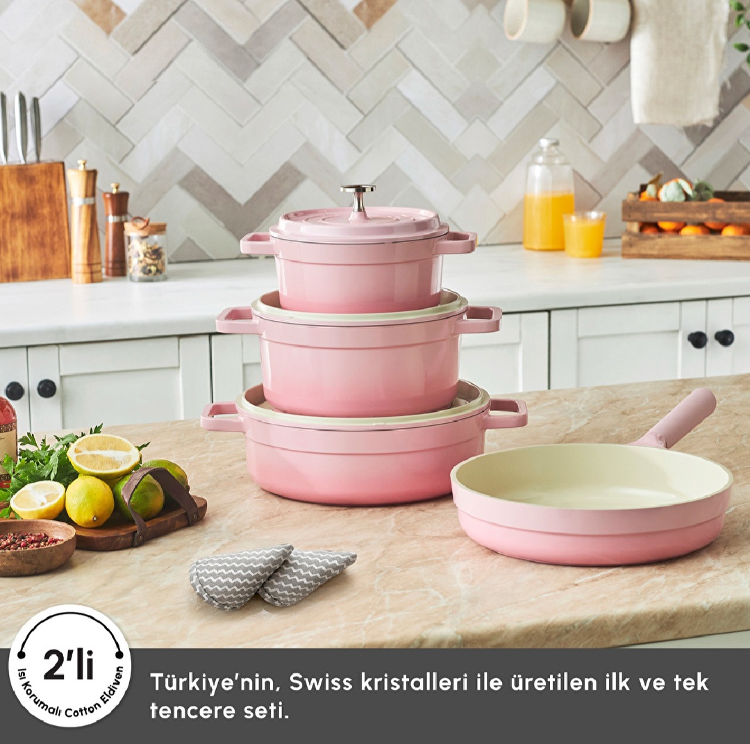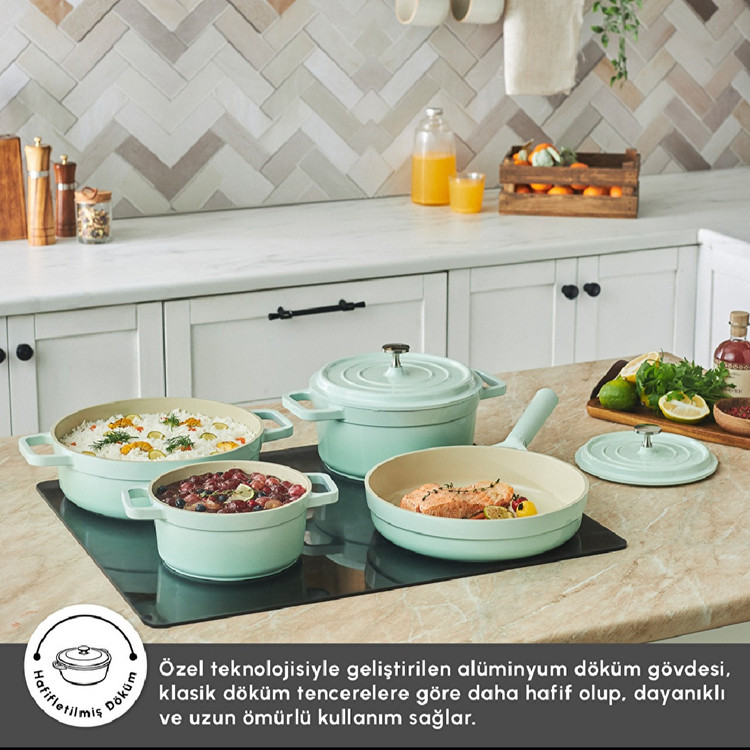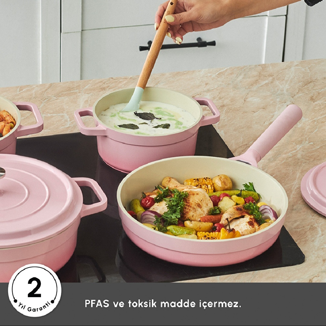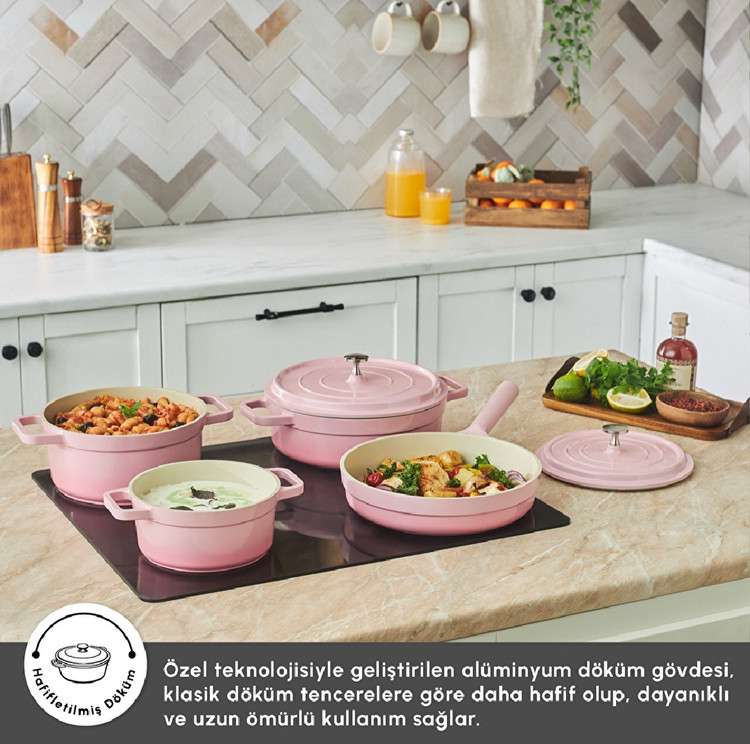🍳 Karaca Swiss Crystal Neocast 7 Parça Döküm Tencere ve Tava Seti
