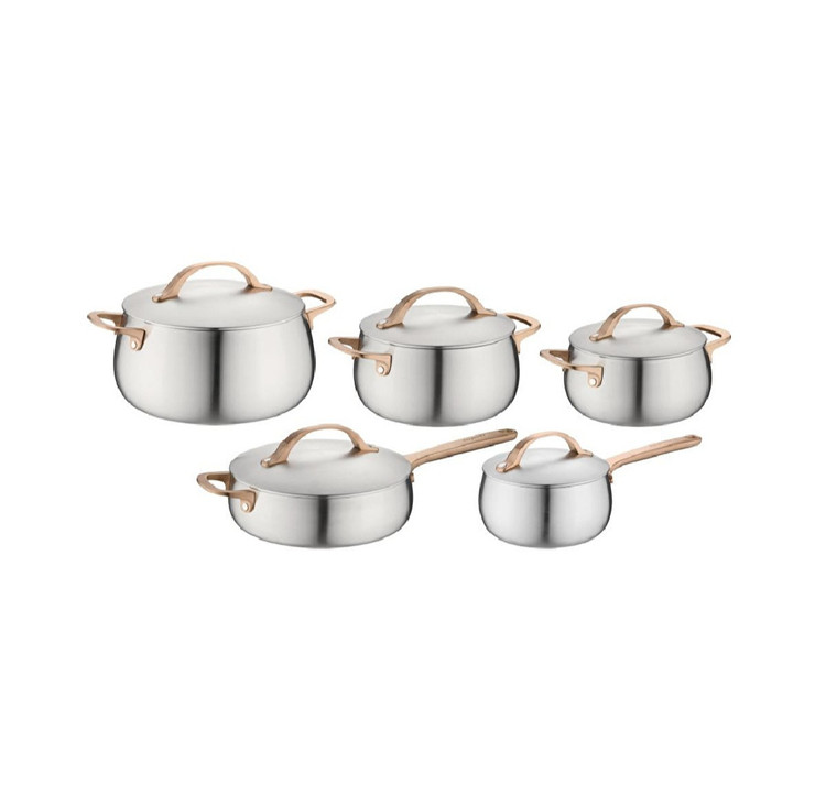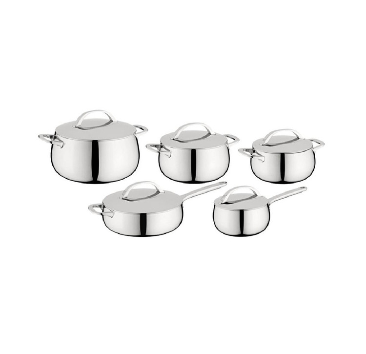 سرویس قابلمه BergHOFF Home Belly با طراحی گرد و براق (Belly Design) علاوه بر زیبایی، باعث گردش بهتر حرارت داخل قابلمه میشود و پخت یکنواختتری ایجاد میکند.