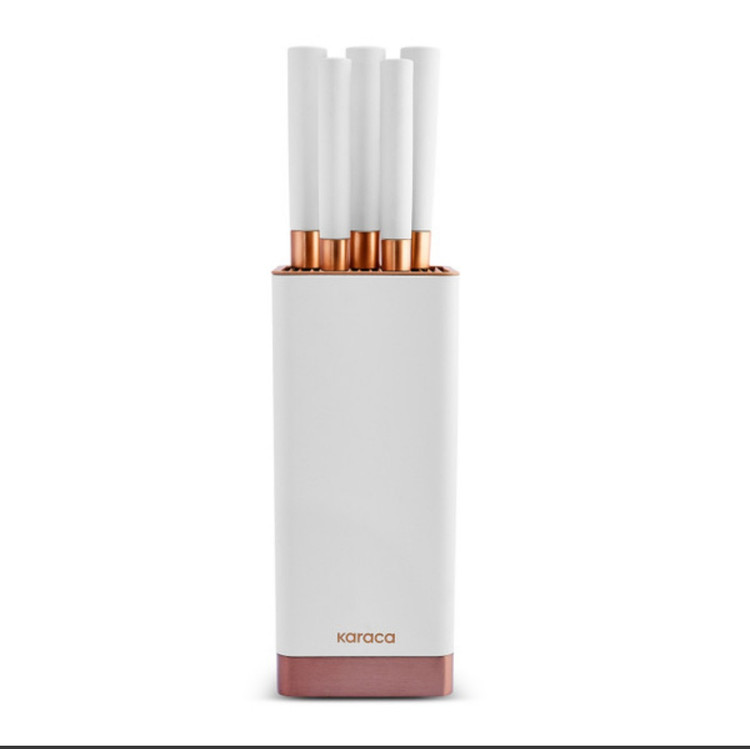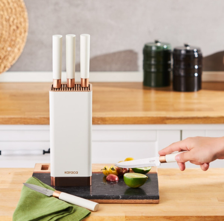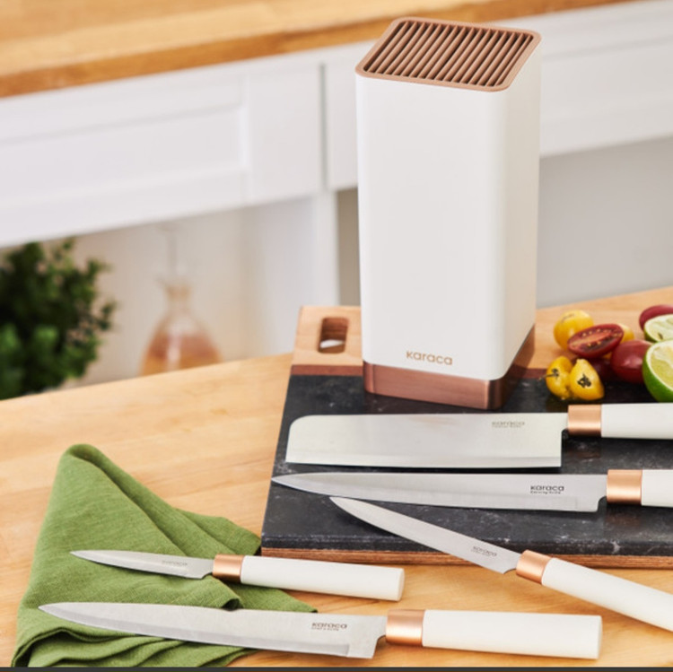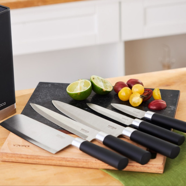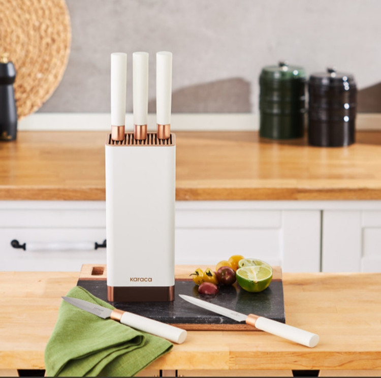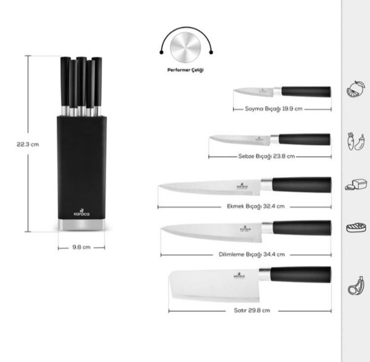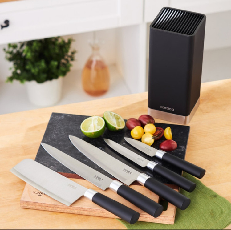 سرویس چاقو 6 پارچه کاراجا Skycut Stand،افزودنی عالی برای هر آشپزخانه ای است. این سرویس چاقو با کیفیت بالا برای تهیه غذا با تیغه های همه کاره و بادوام خود طراحی شده است. چه یک سرآشپز حرفه ای باشید و چه آشپز خانه خود، این مجموعه همه نیاز های شما را برای برش دادن، تکه کردن و ریز کردن را تامین می کند. این مجموعه دارای یک استند شیک است که نه تنها به آشپزخانه شما ظرافت می بخشد بلکه چاقوهای شما را مرتب و در دسترس نگه می دارد. این پایه همچنین تضمین می کند که چاقوها به طور ایمن نگهداری می شوند، از اتفاقات ناگوار جلوگیری می کند و تیزی آنها را برای مدت طولانی تری حفظ می کند. سرویس چاقو 6 پارچه کاراجا Skycut Stand، یکی از ضروریات هر آشپزخانه ای است. با تیغه های همه کاره، طراحی ارگونومیک و پایه شیک، هر چیزی را که برای ارتقای تجربه آشپزی خود نیاز دارید را ارائه می دهد. چه یک آشپز مبتدی یا یک آشپز باتجربه باشید، این مجموعه چاقو مطمئناً ابزاری است که برای تمام نیازهای آشپزی شما خواهد بود