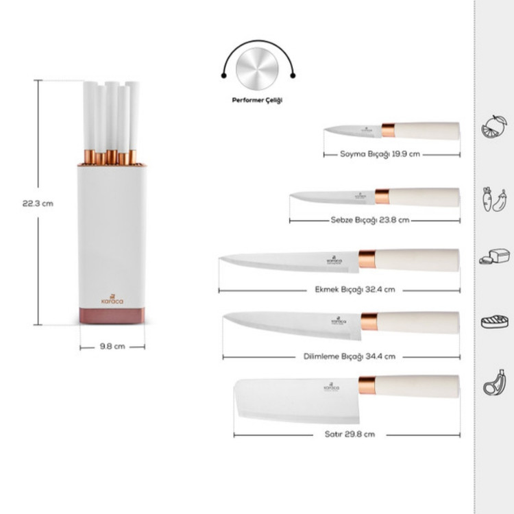 ۱ عدد چاقو سرآشپز ۱ عدد چاقو پوست کن ۱ عدد چاقو میوه سبزی ۱ عدد چاقو خردکن ۱ عدد ساطور