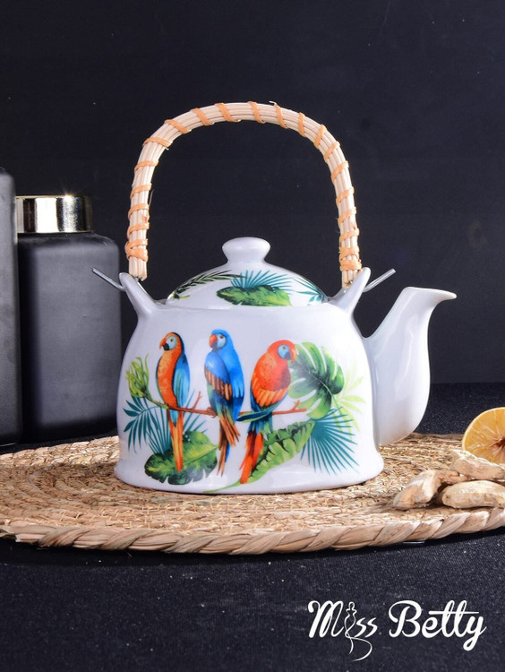 قوری دسته حصیری برند miss Betty ترکیه 🇹🇷 جنس چینی رنگ ثابت و کیفیت عالی قابل شستشو در ماشین ظرفشویی در سه طرح مختلف ظرفیت 1/5 لیتر