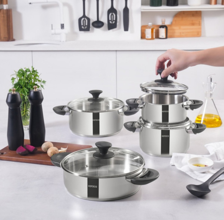 سرویس قابلمه ۸ پارچه استیل کاراجا بوجا ترکیه karaca buca