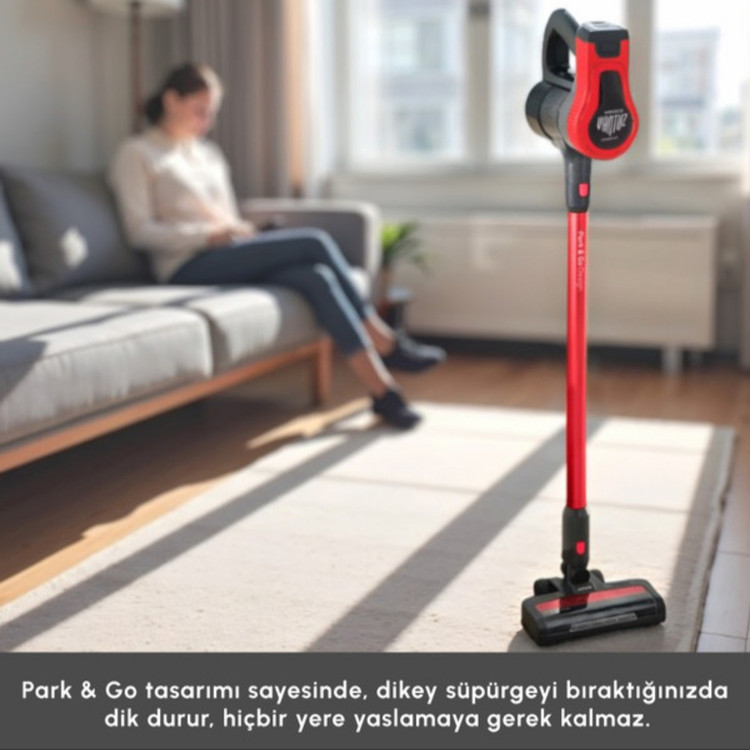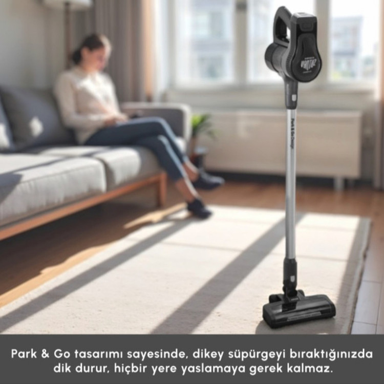 با ویژگی «پارک کن و برو»، میتوانید هنگام جارو کشیدن هر زمان که بخواهید دستگاه را به حالت ایستاده قرار دهید. بنابراین وقتی در حین تمیزکاری نیاز دارید کاری انجام دهید یا چیزی بردارید، میتوانید دستگاه را بهراحتی و با اطمینان در حالت ایستاده پارک کنید.