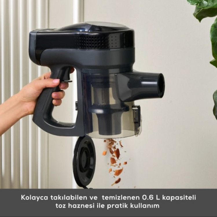 مخزن گرد و غبار با ظرفیت 0.6 لیتر بهراحتی جدا و نصب میشود و با فشردن یک دکمه، بدون پراکنده شدن گرد و غبار، بهصورت کاملاً بهداشتی تخلیه میشود.