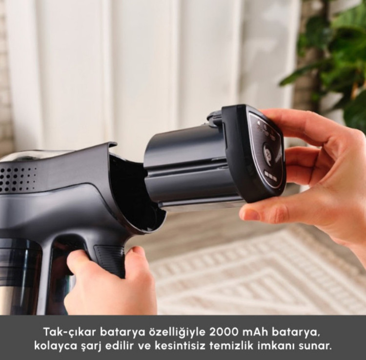 با فناوری باتری قابل جدا شدن، جاروبرقی Vantuz Power Force را میتوان در هر مکانی یا بر روی پایه آن بهراحتی شارژ کرد. این دستگاه با باتری 2000 میلیآمپر، امکان 45 دقیقه تمیزکاری بدون وقفه را فراهم میکند.