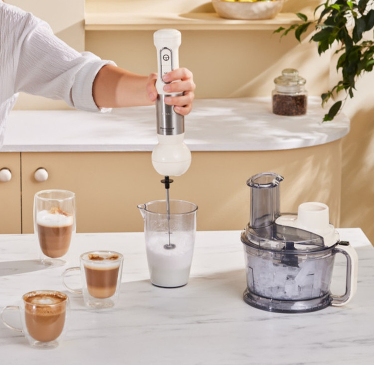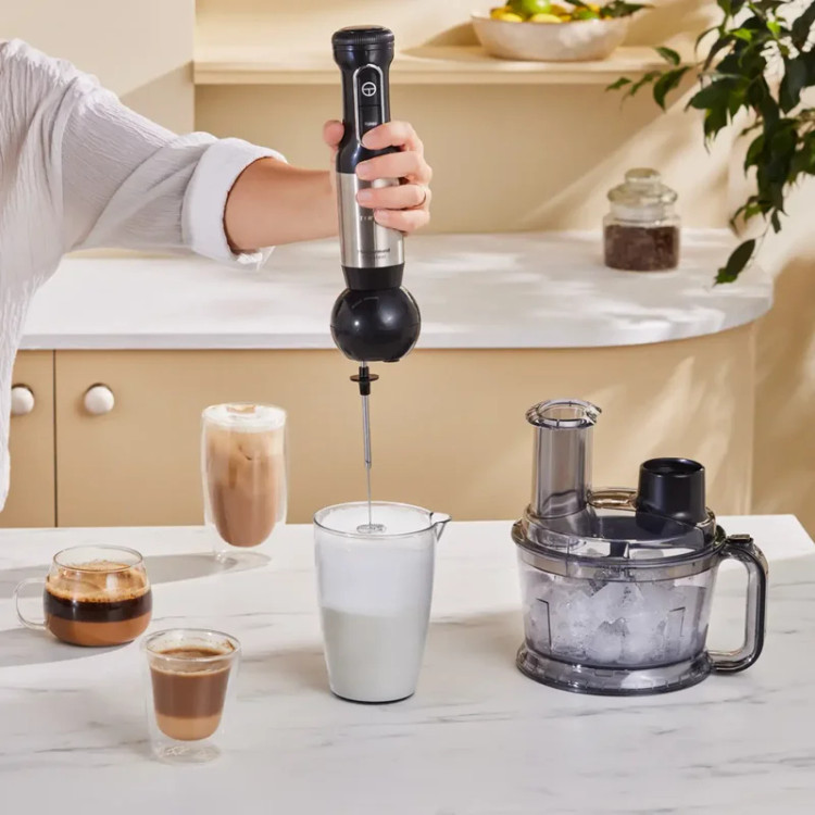 علاوه بر این، به لطف 25٪ بلندی اضافی 25 سانتی متری همزن، می توانید مخلوط های صاف و یکدستی را بدون پاشیدن حتی در ظروف عمیق بدست آورید.