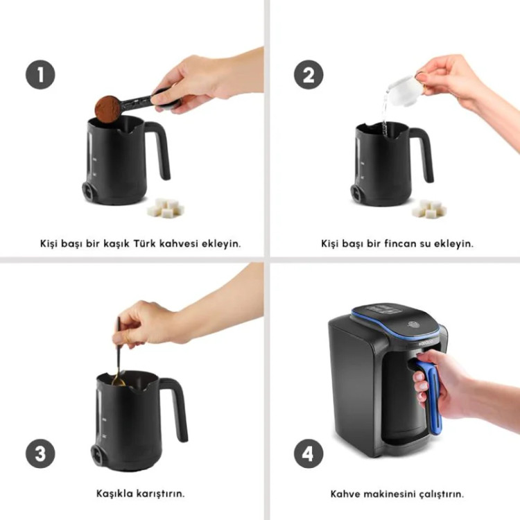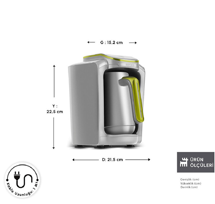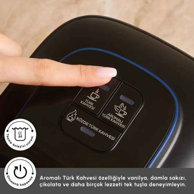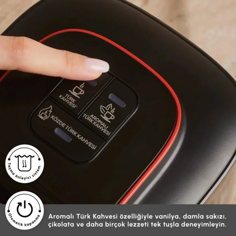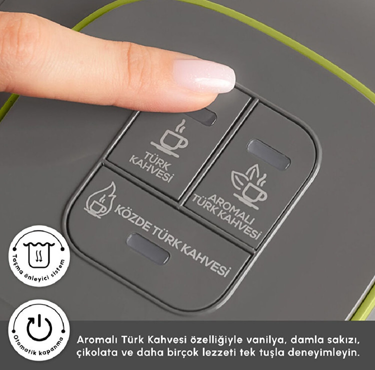 قهوه ترک ساده، قهوه ترک ذغالی و یا طعم دار رو حالا با این قهوه ساز میتونید تهیه کنید ! گزینه تهیه قهوه مخصوص طعم دار ترک ، گزینه مخصوص قهوه ذغالی با کافئین بالاتر و گزینه تهیه قهوه ترک ساده از قابلیت های این قهوه ساز است